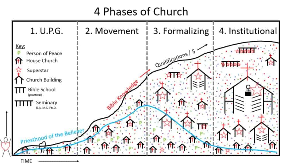 Research by the Beyond organization illustrates what we see. The diagram illustrates the four stages that movements and churches go through.[i]